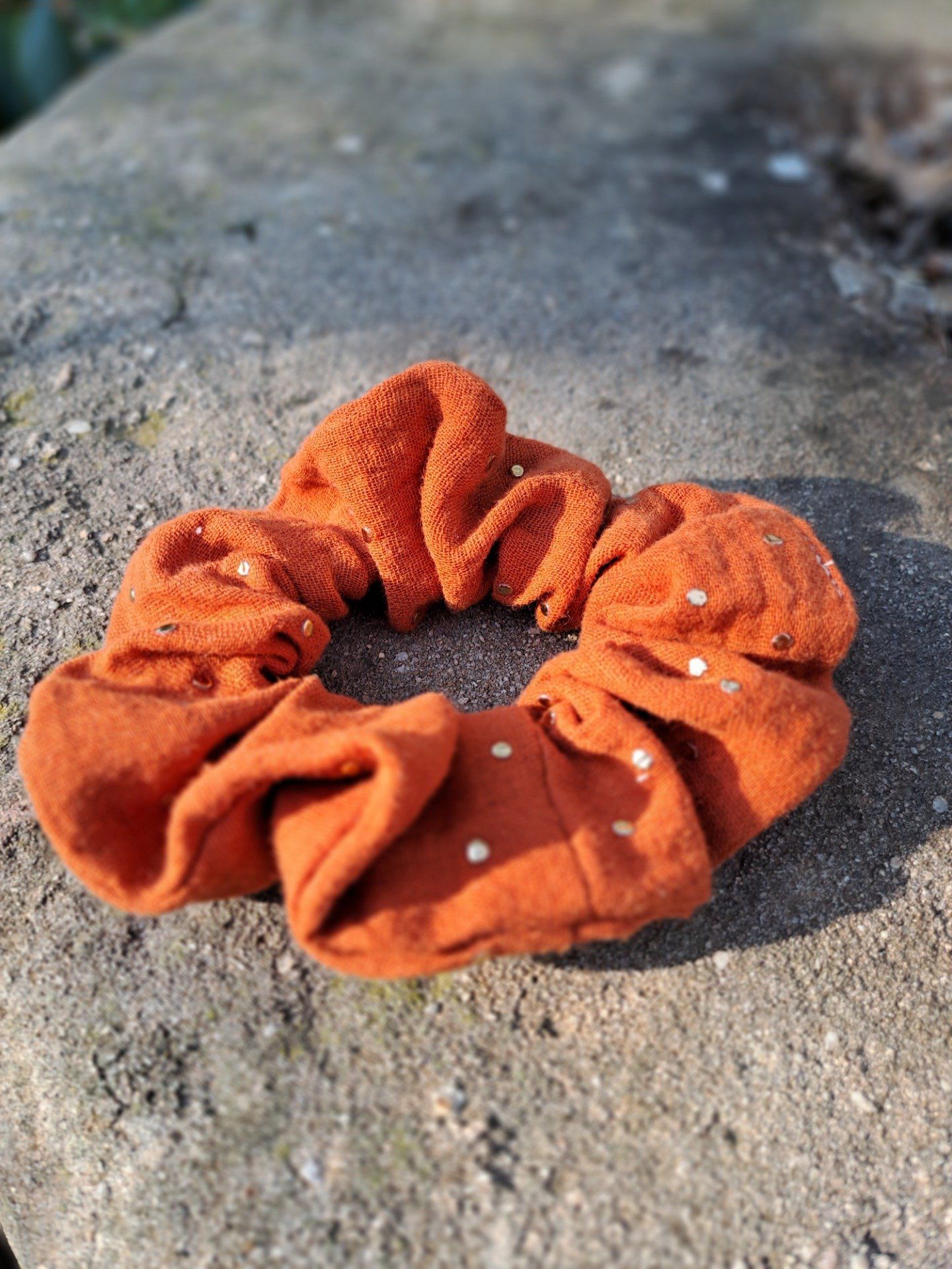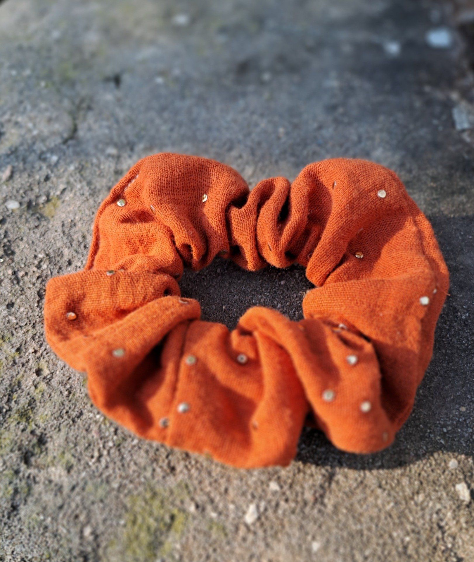 Chouchou corail à pois dorés