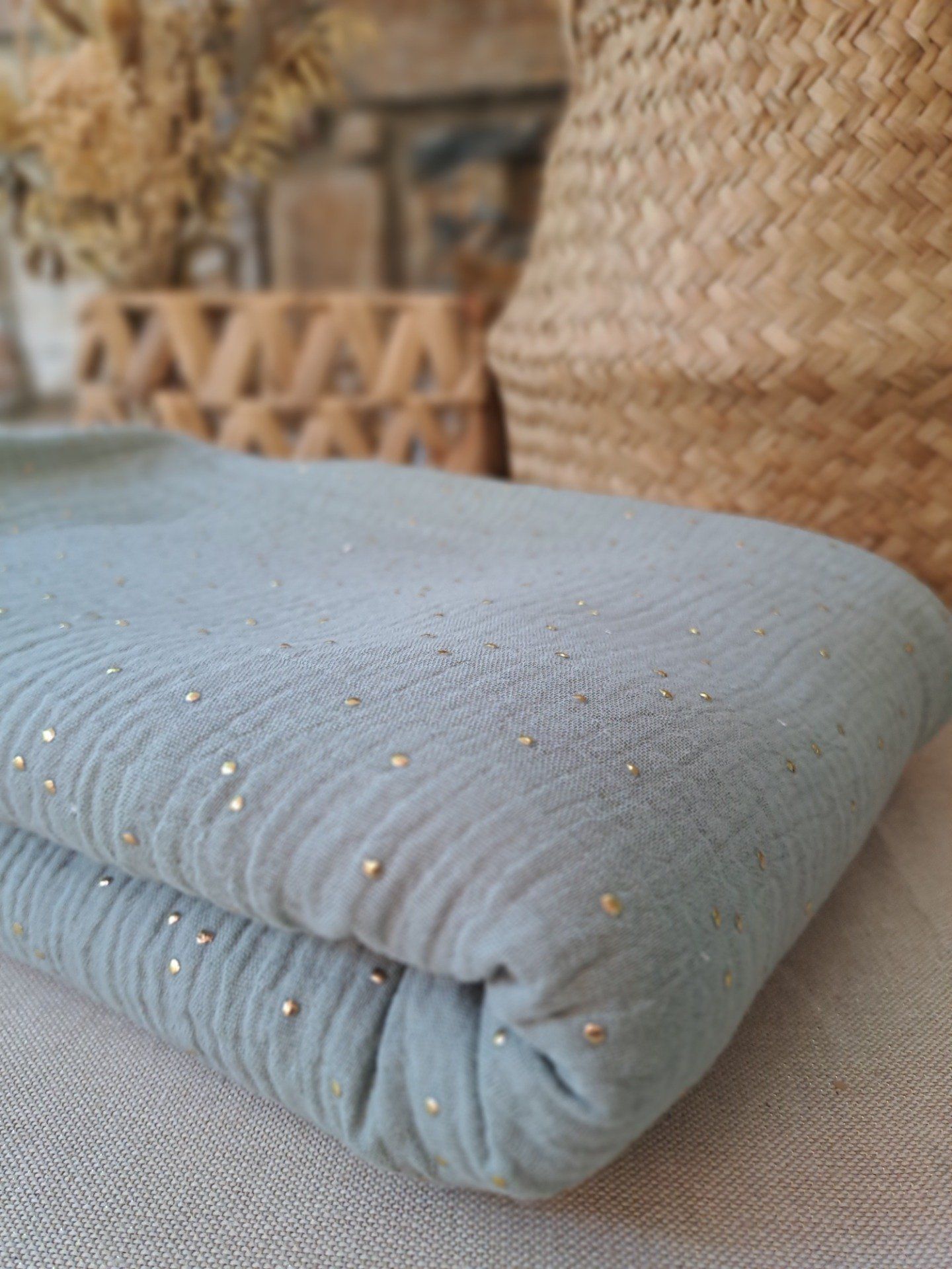 Couverture en sherpa - Vert de gris à pois dorés
