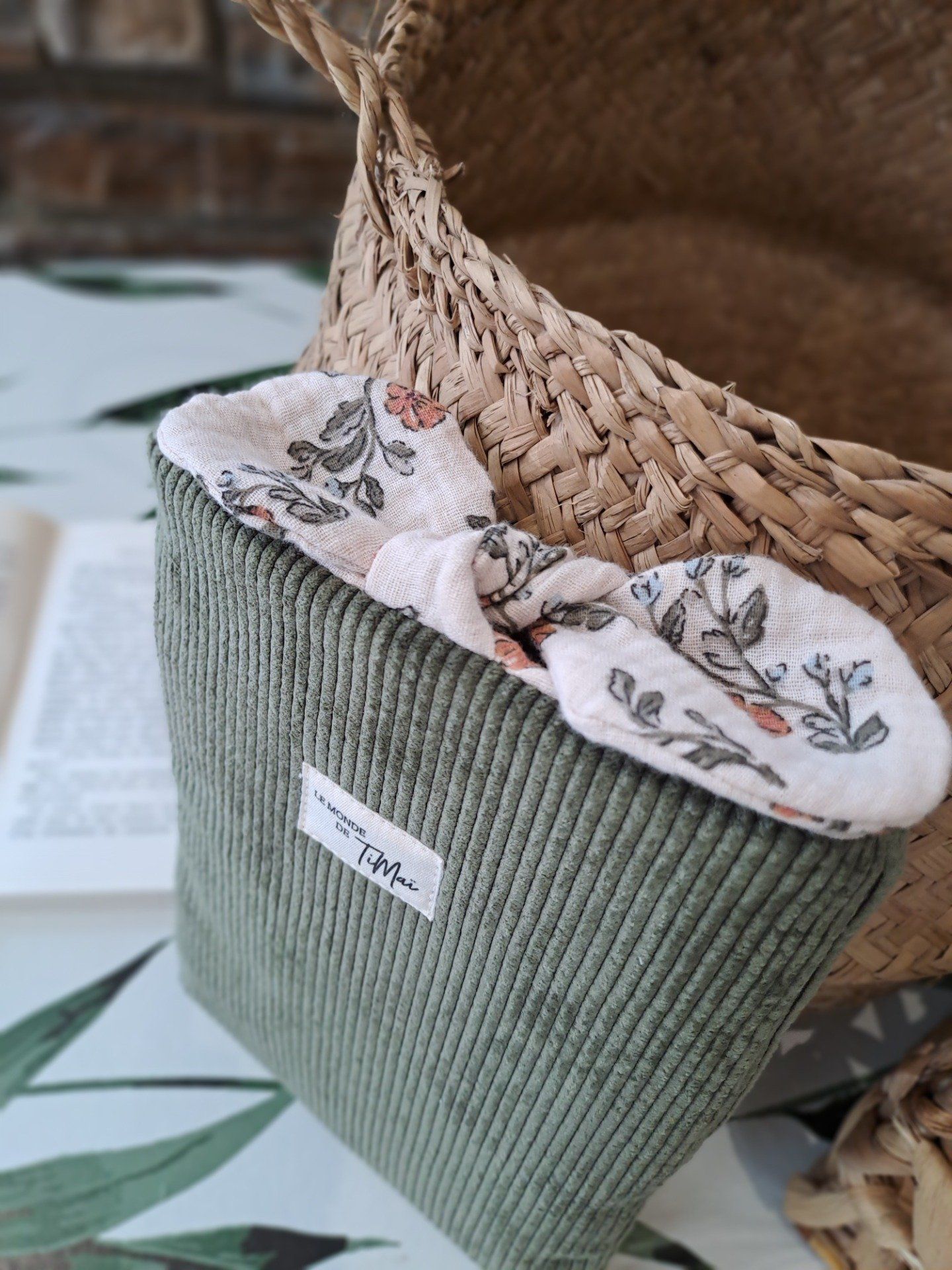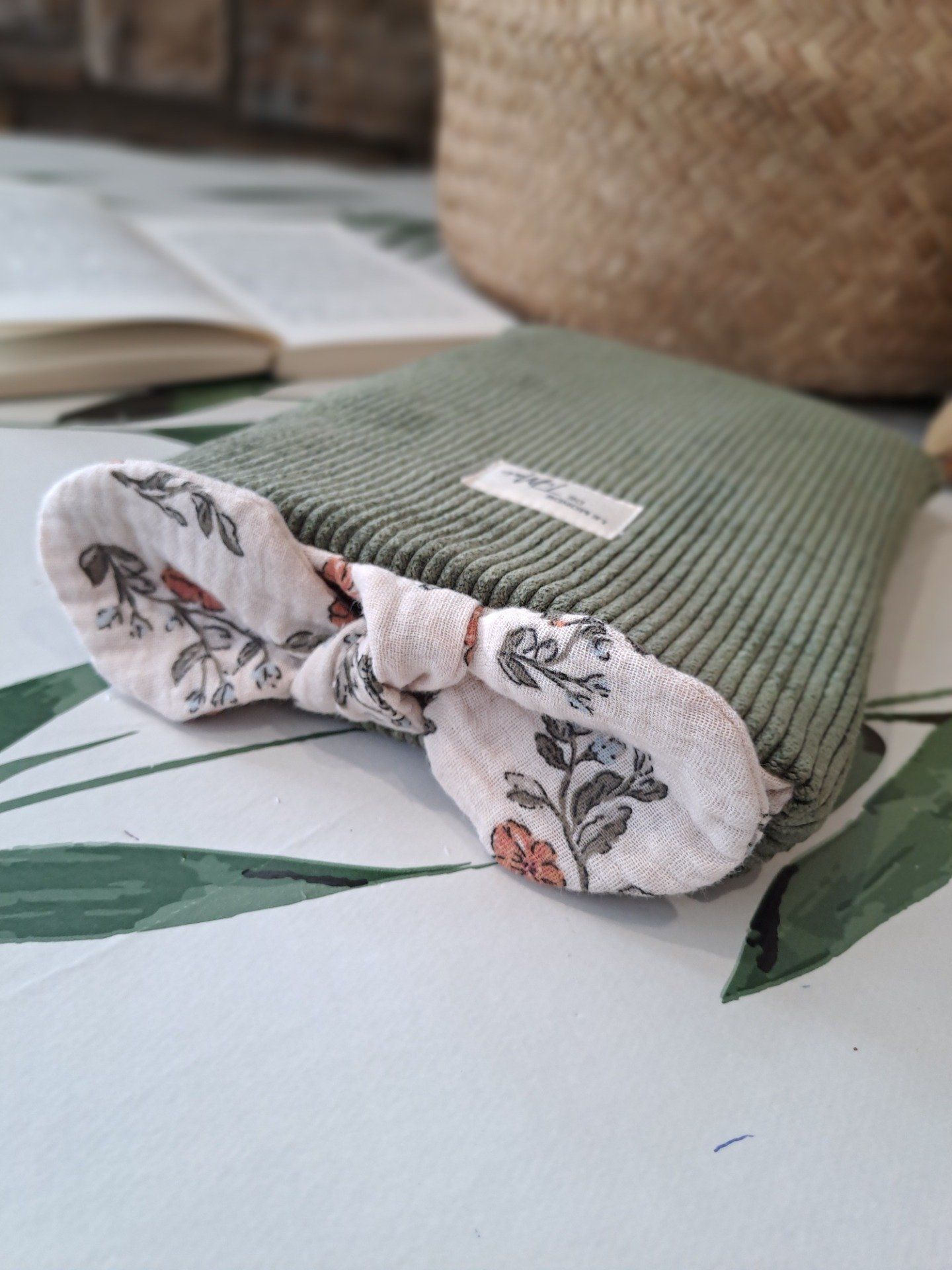 Le petit + : La fermeture est assurée par un joli petit nœud à nouer sur le dessus, qui permet de s'assurer que votre livre ne glisse pas hors de la pochette et qui apporte également un design incomparable.